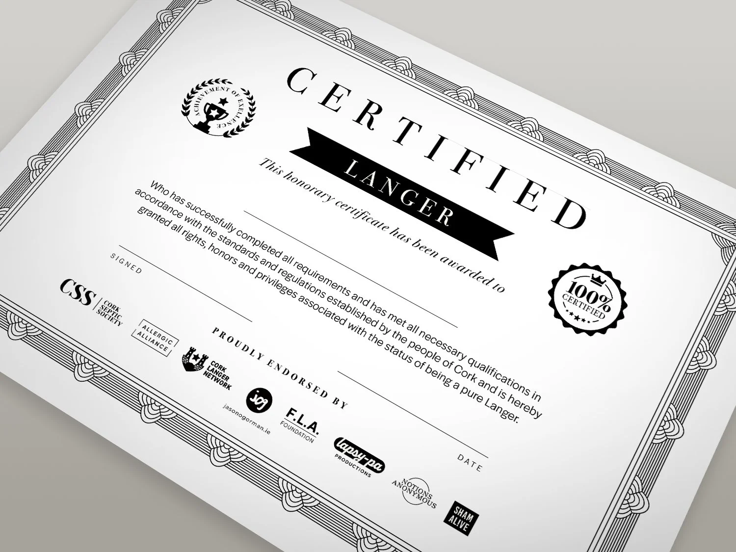 Endorse the Langer in your life with a certificate that celebrates their status. The certificate has space to write your favourite Langer’s name. This version of the certificate is black & white - A4 size. Colour versions including Lapsy-Pa, Lasher and Legend are available here.