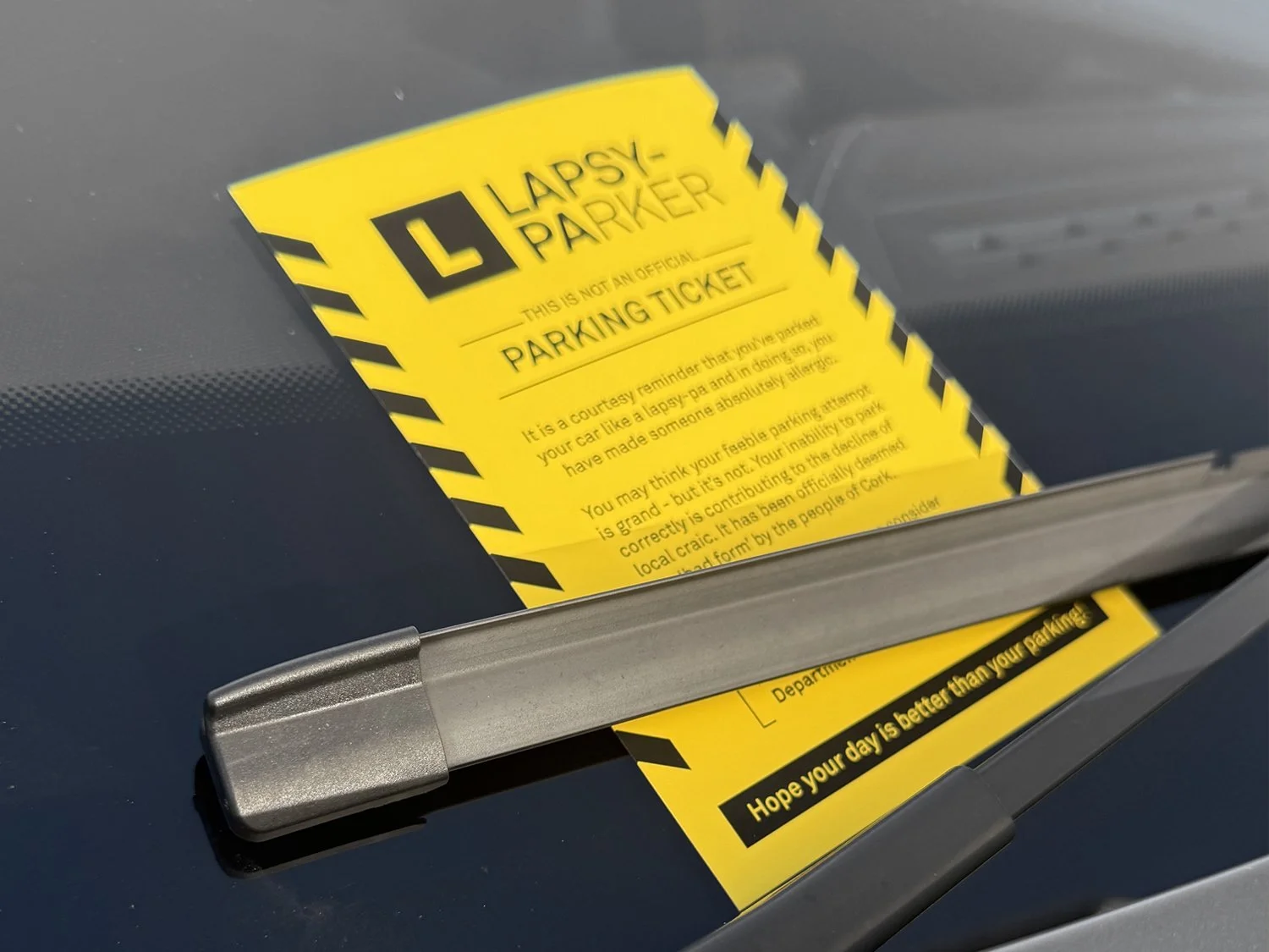 A courtesy parking ticket to reminder someone that they’ve parked their car like a lapsy-pa. No penalty points. No fine. Just shame. Available in black and white and colour. Print a few out and stick em in your car for when you feel the need to tell someone to cop on ;-)